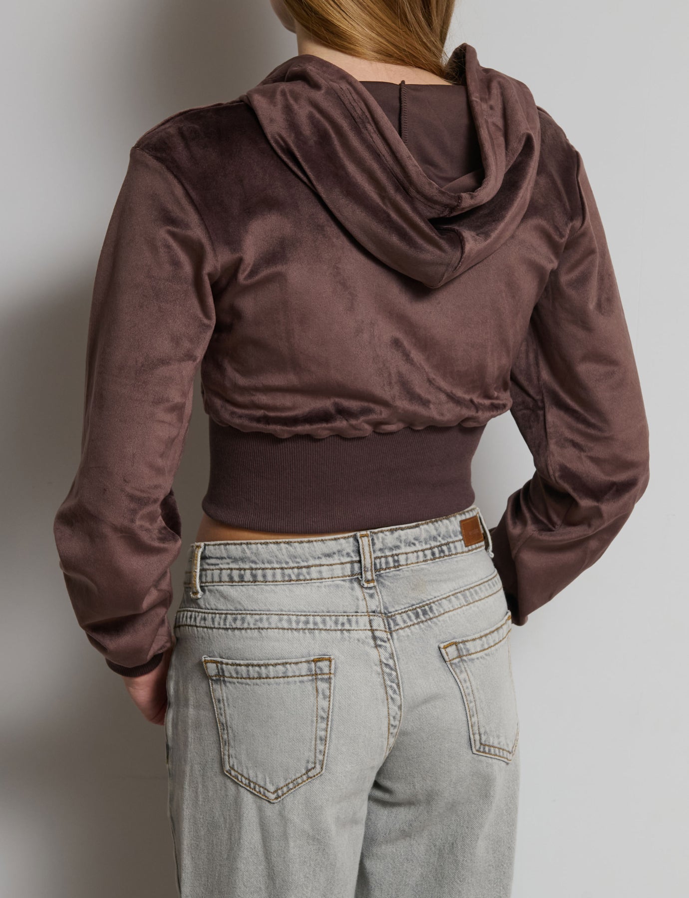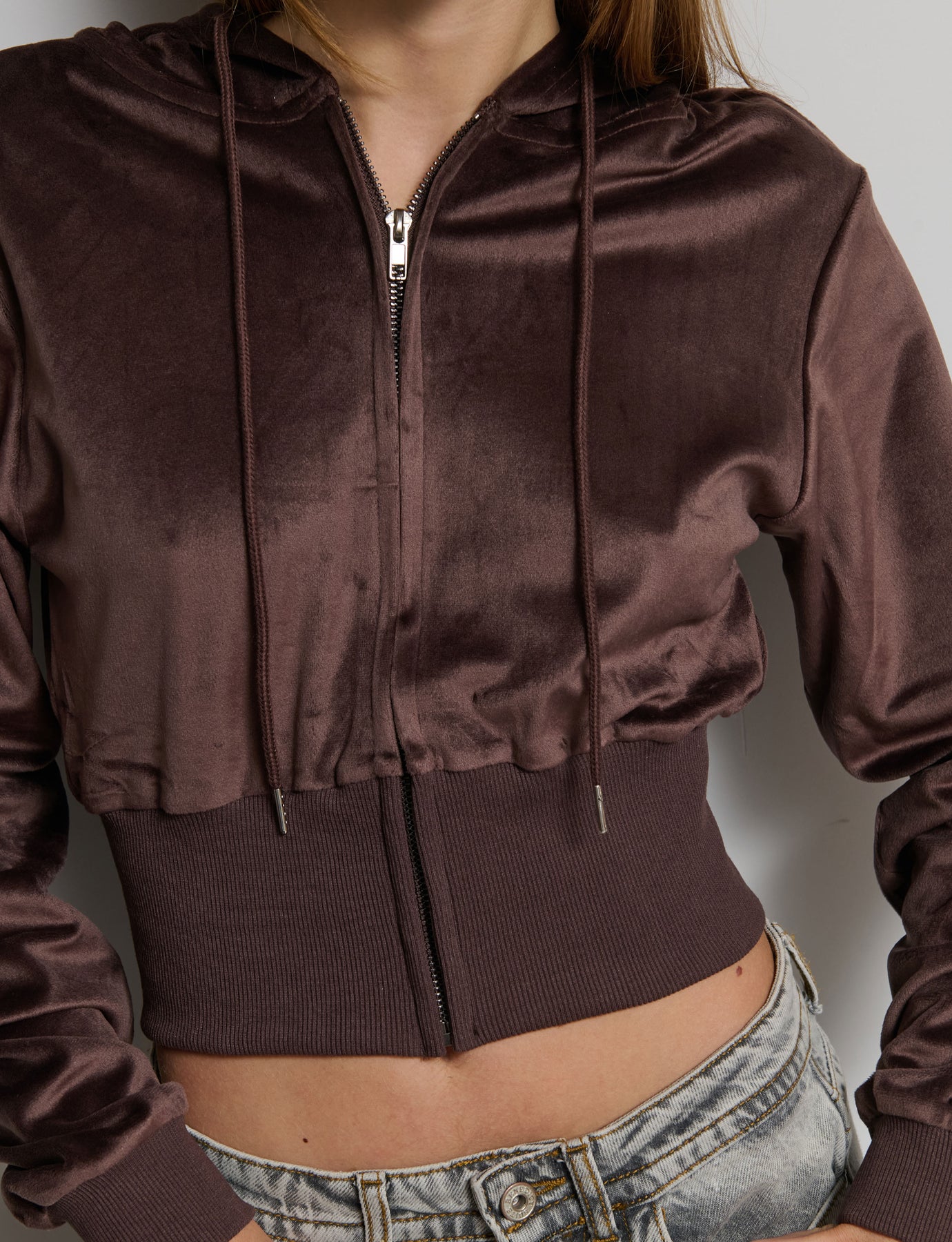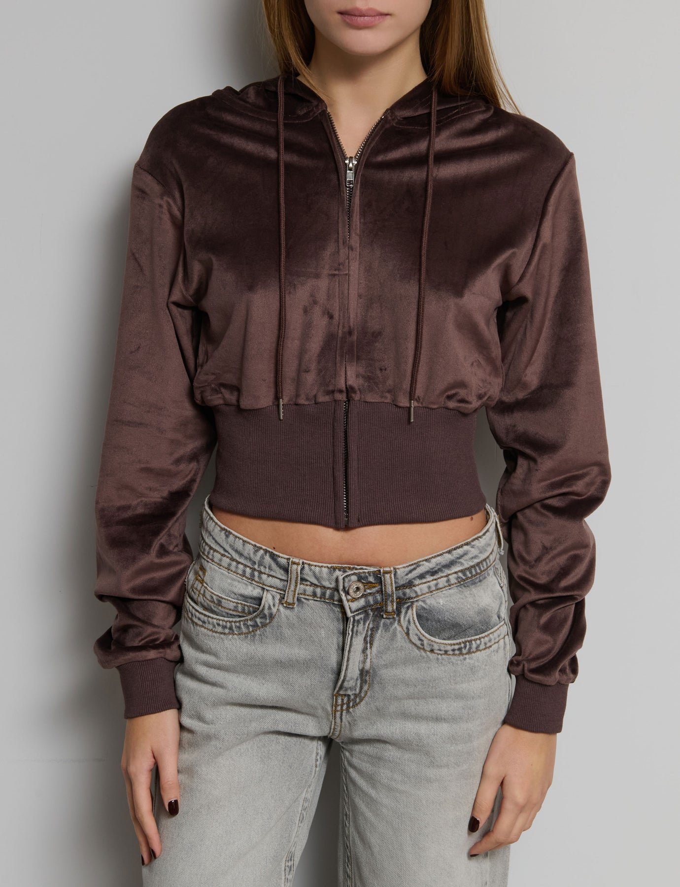 Felpa in ciniglia con fascia alta effetto corsetto, cappuccio e apertura a zip Composizione: 95% Poliestere 5% Elastane