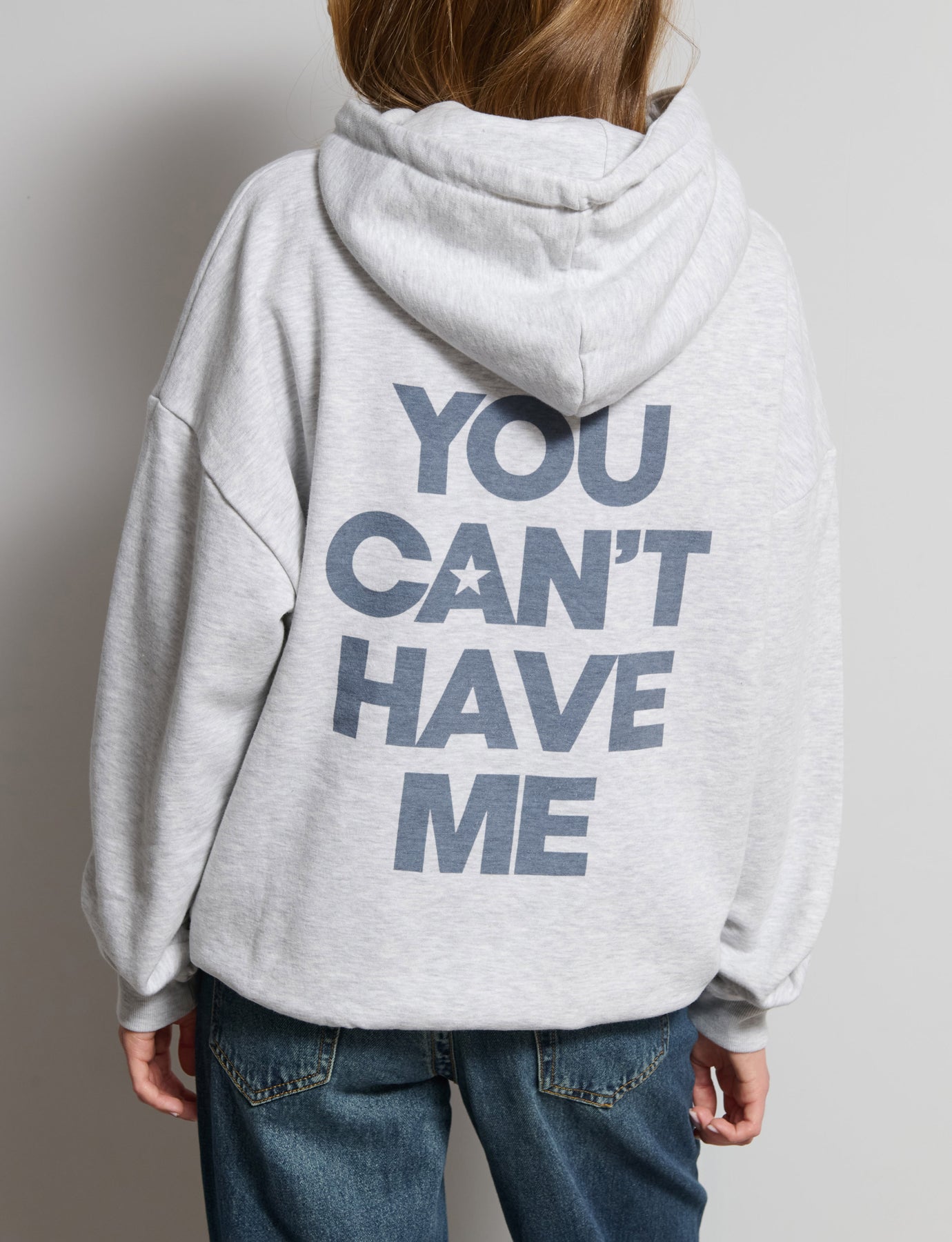 Felpa oversize cappuccio con laccetti e stampa scritta dietro. Composizione: 60% Cotone 40% Poliestere