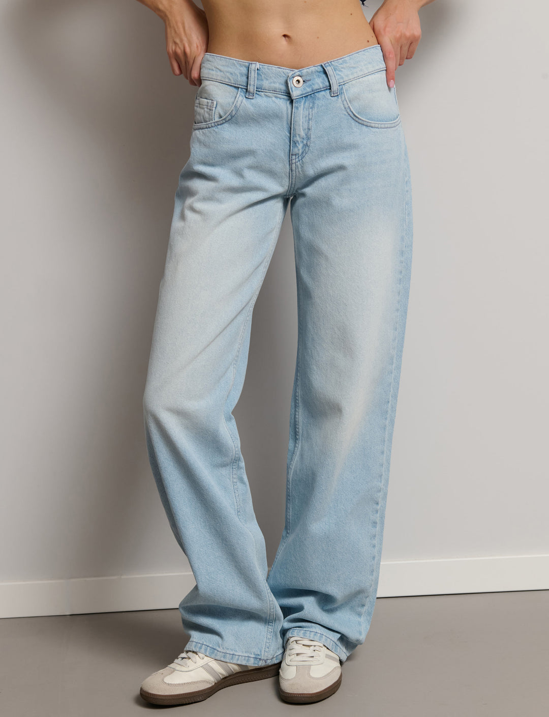 Straight jeans with rolled-up waist