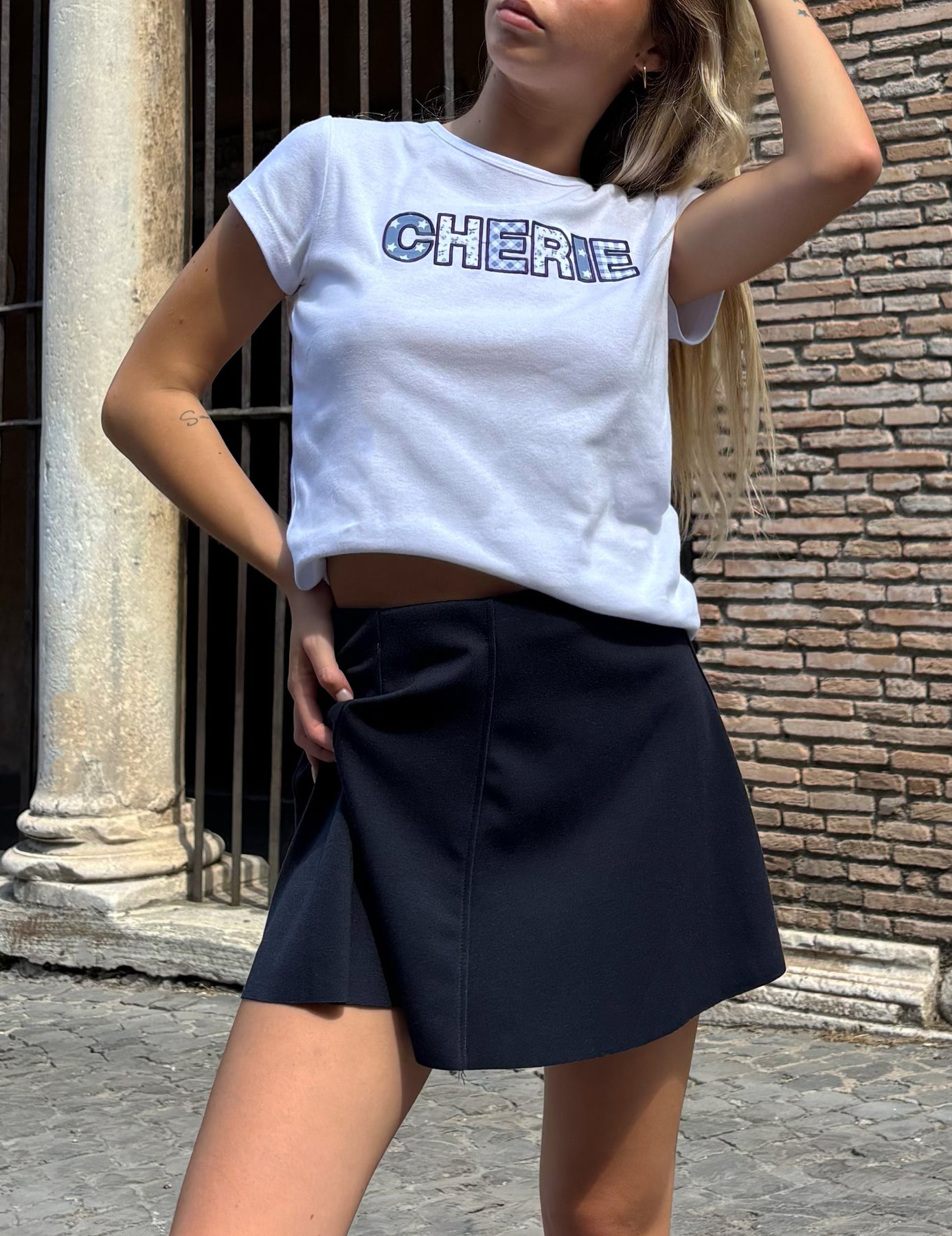 A-line skirt. Made in Italy. Composition: 77% Polyester, 18% Nylon, 5% Elastane.