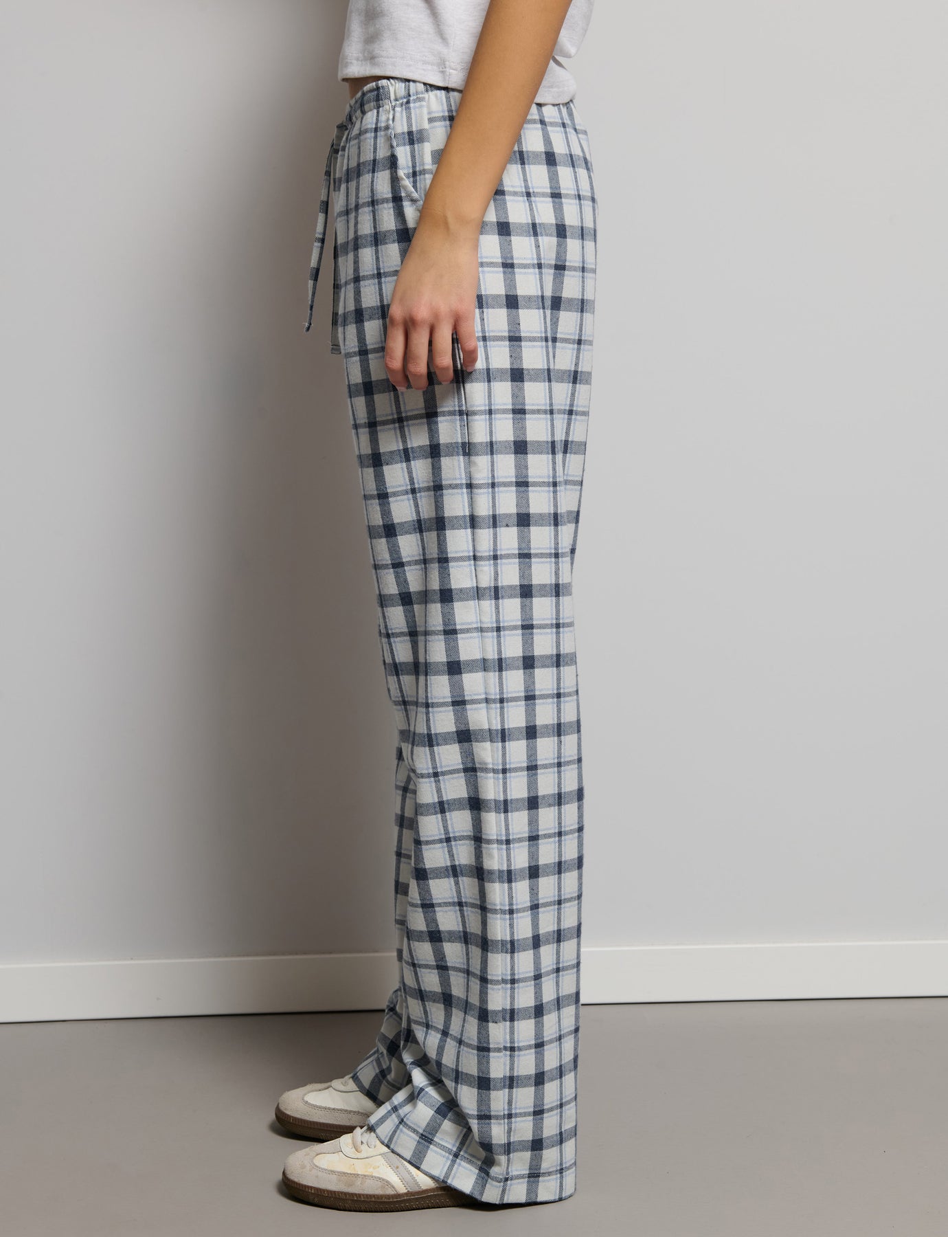 Checked drawstring trousers. Composition: 45% Cotton, 45% Polyester, 10% Viscose.
