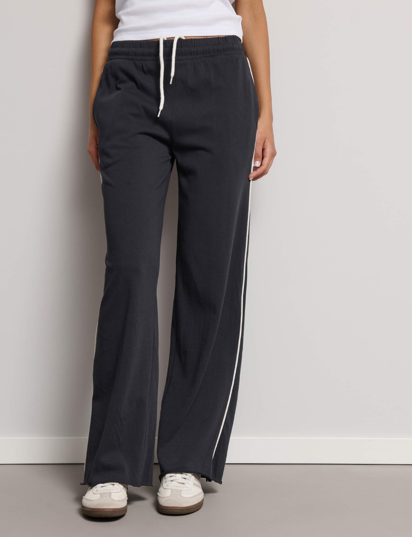 Lightweight wide-leg sweatpants with contrasting vertical piping. Composition: 100% Cotton.