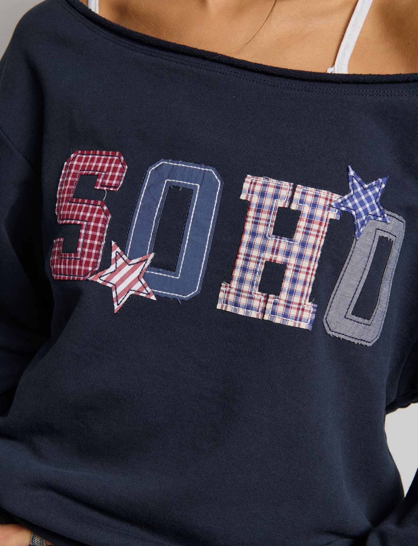 Felpa offshoulder fit casual con scritta patchworki Composizione: 50% Cotone 50% Poliestere