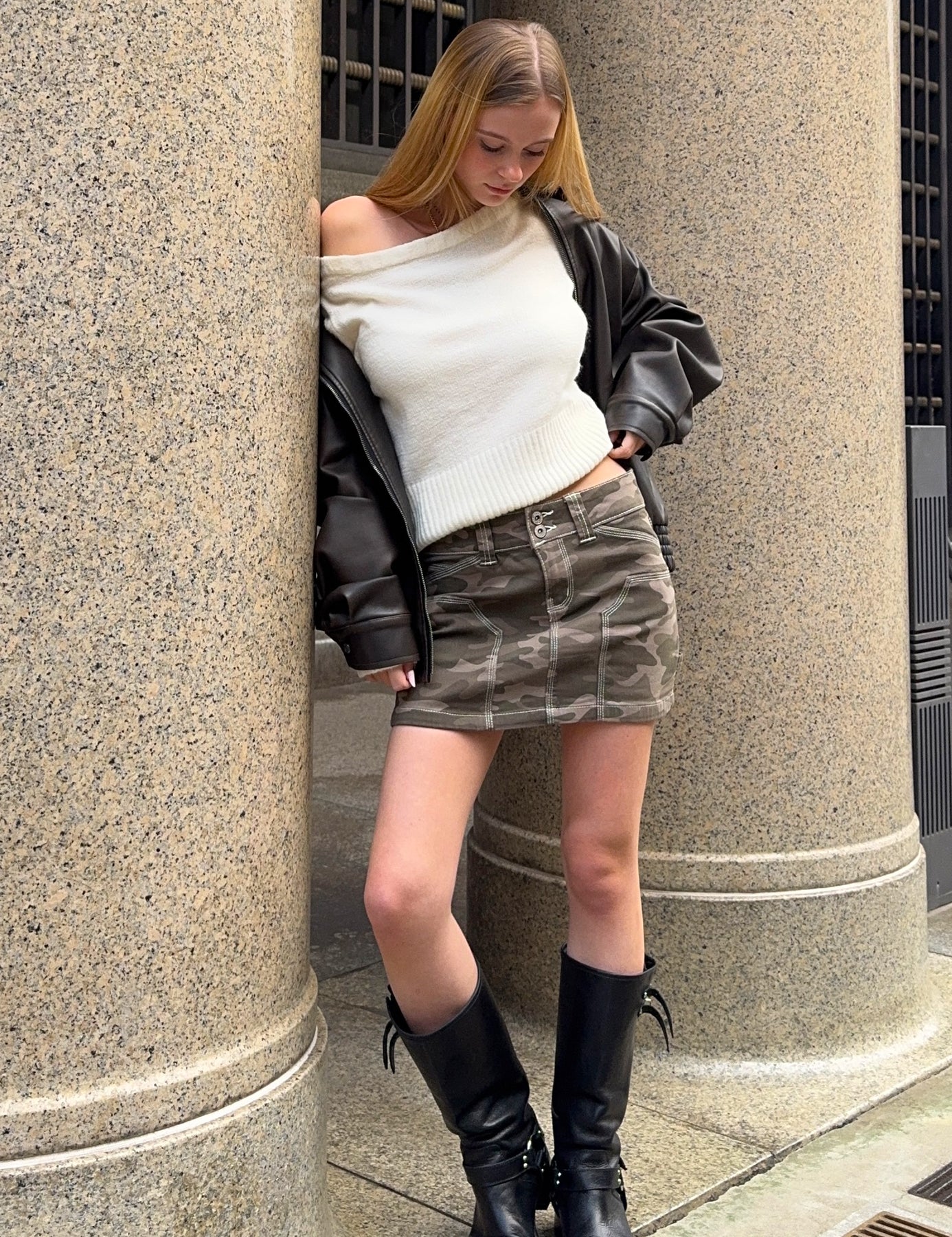 Minigonna cargo in cotone camouflage Composizione: 98% Cotone 2% Elastane La modella è alta 170cm e indossa una S. Colore: camouflage Ref: ROULETTE