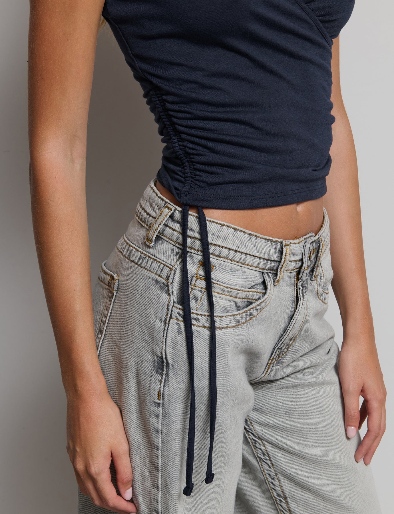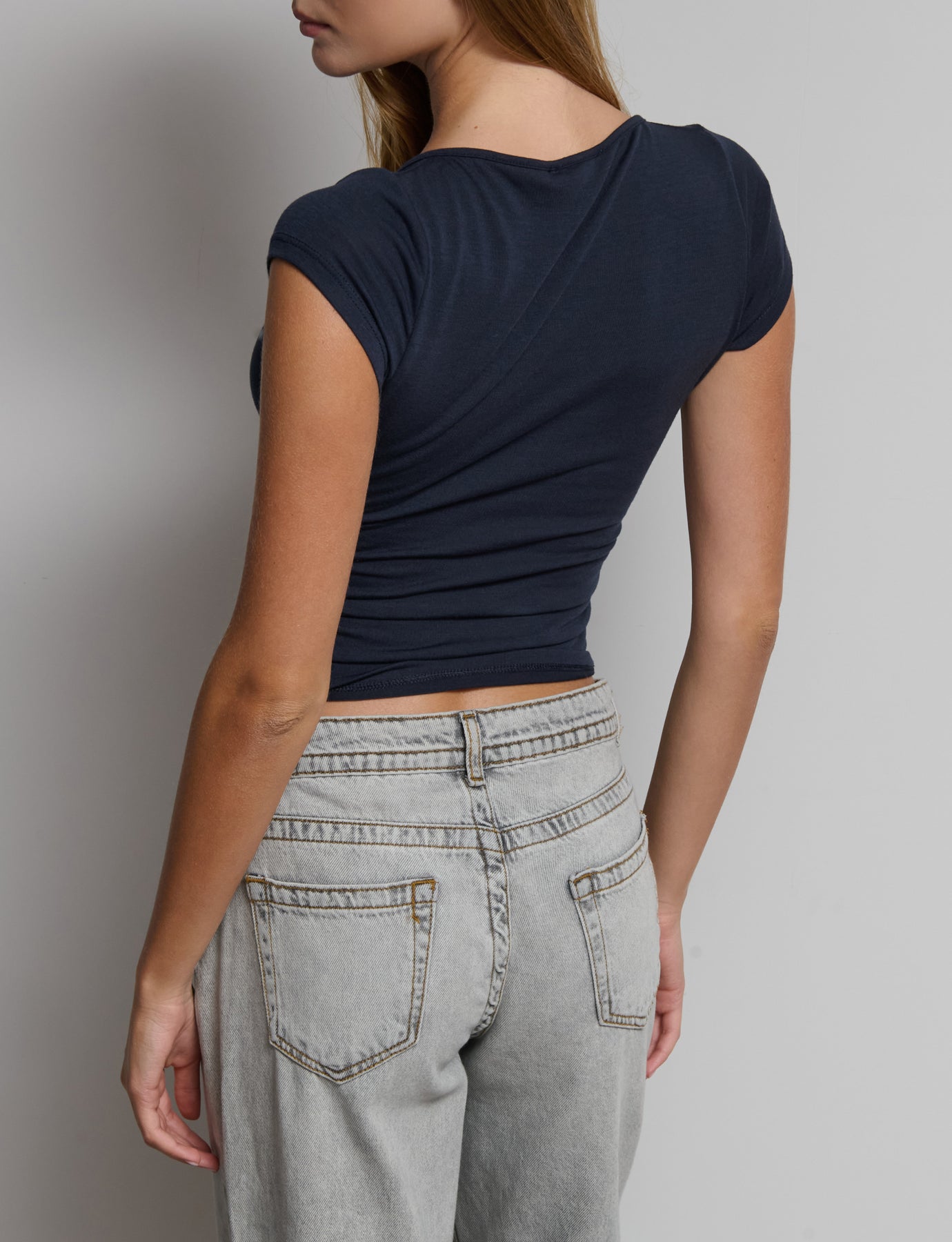 Top manica corta con scollo incrociato e arricciatura sui fianchi.