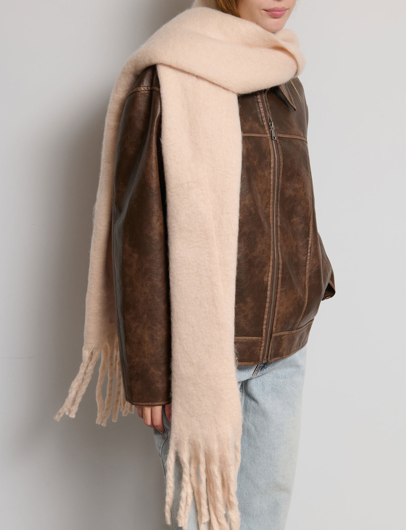 Sciarpa maxi tinta unita con frange. Composizione: 100% Poliestere.