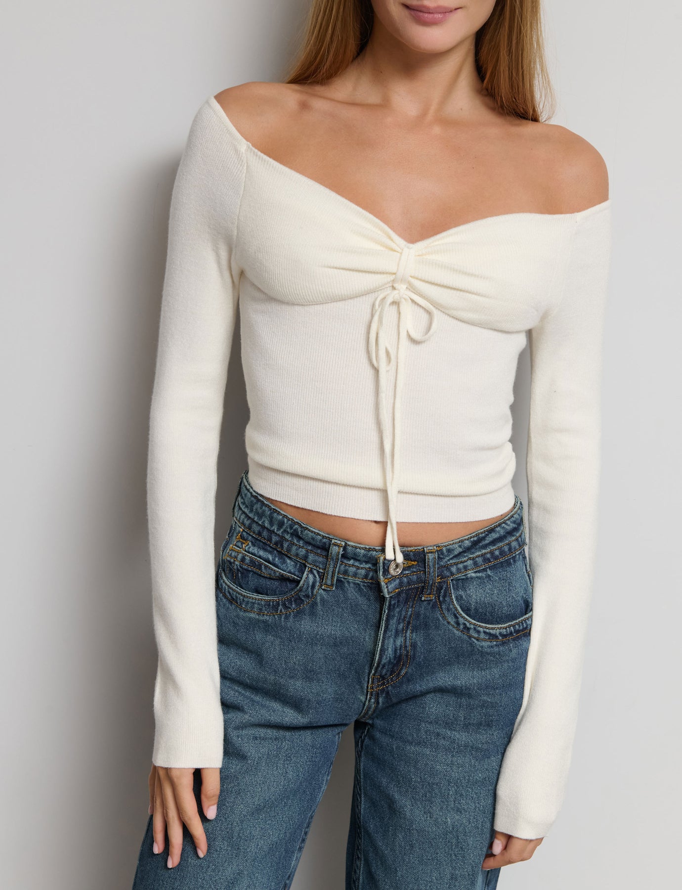 Maglia aderente manica lunga con spalle scoperte e fiocco Composizione: 52% Viscosa 26% Poliestere 22% Nylon