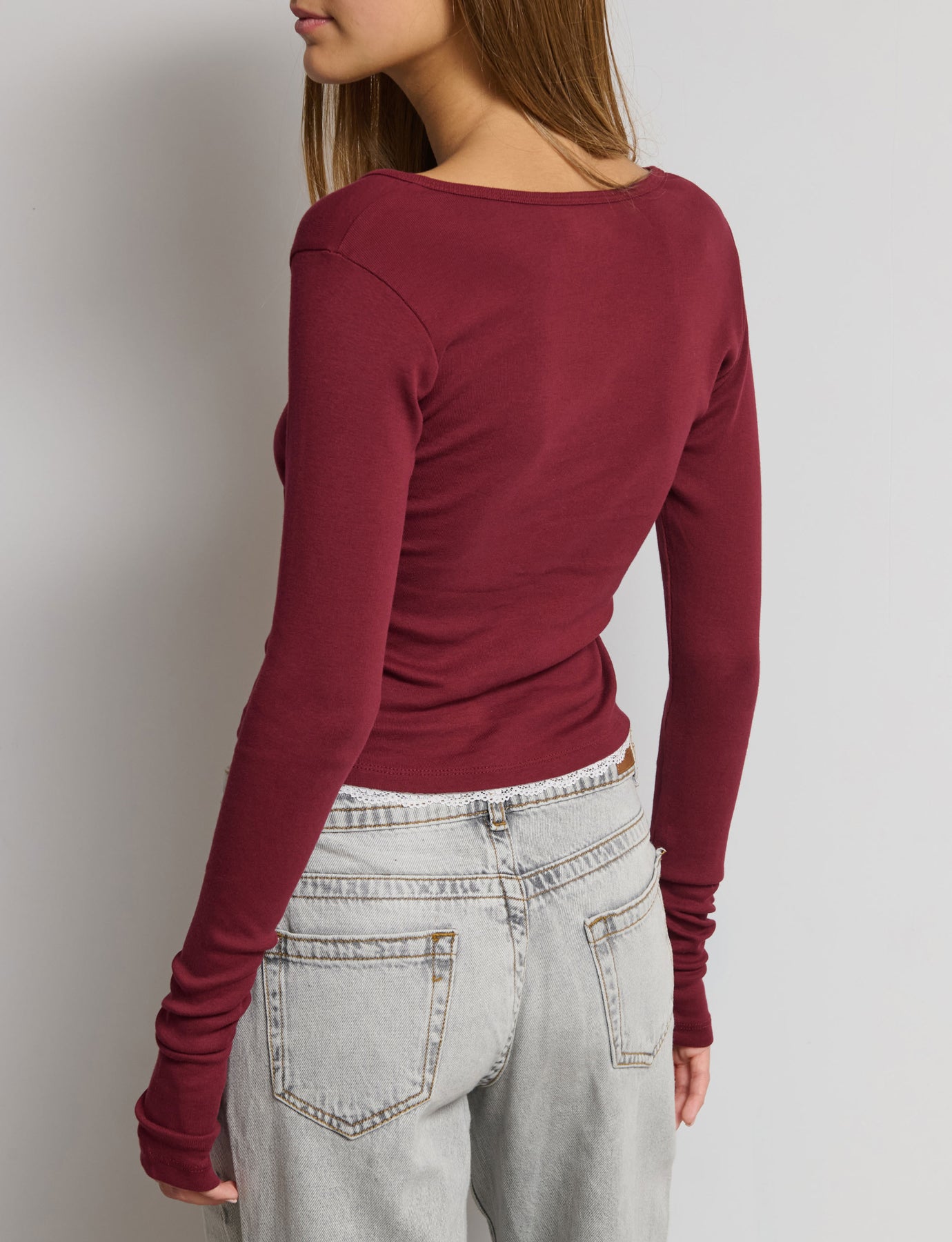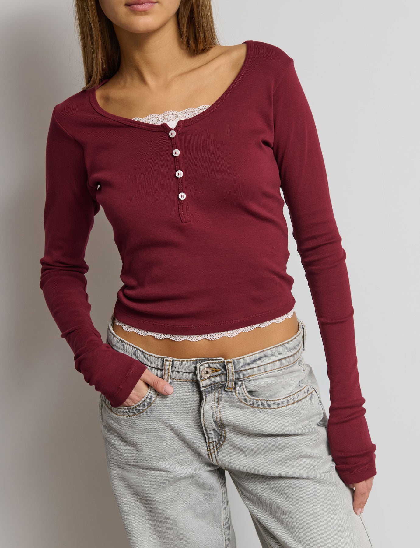 Top manica lunga con bottoncini e pizzo ed effetto doppio Composizione: 100% Cotone