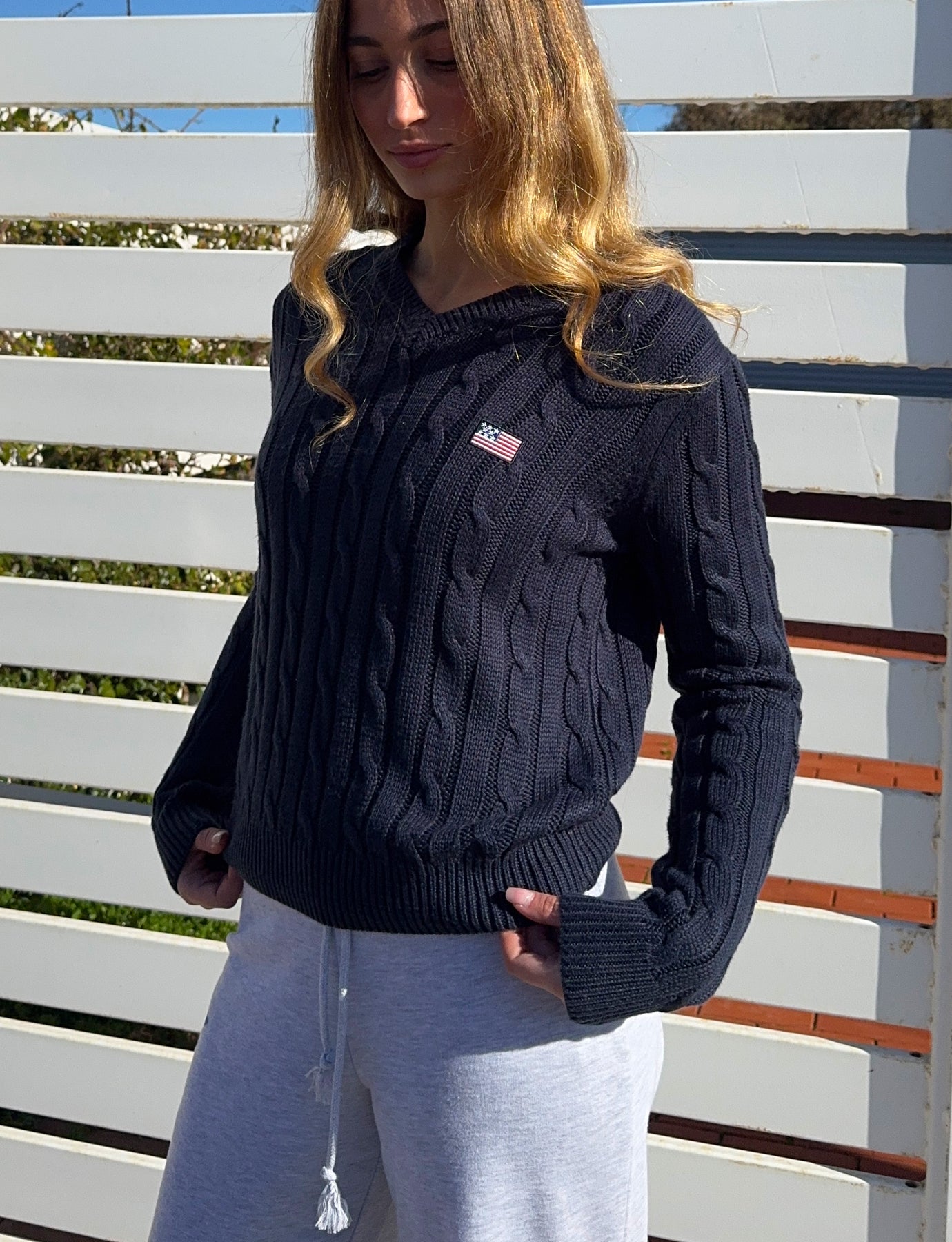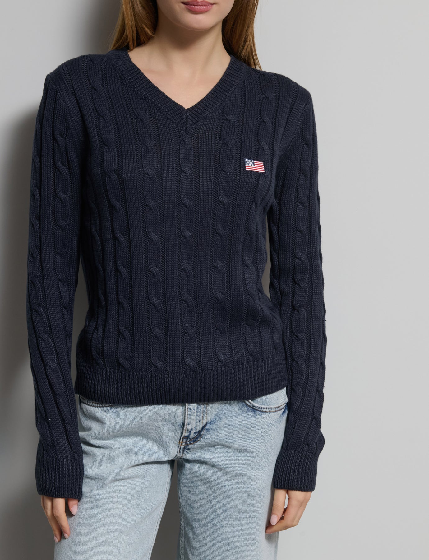 Maglione trecce mano cotone con ricamo bandiera Composizione: 100%Acrilico