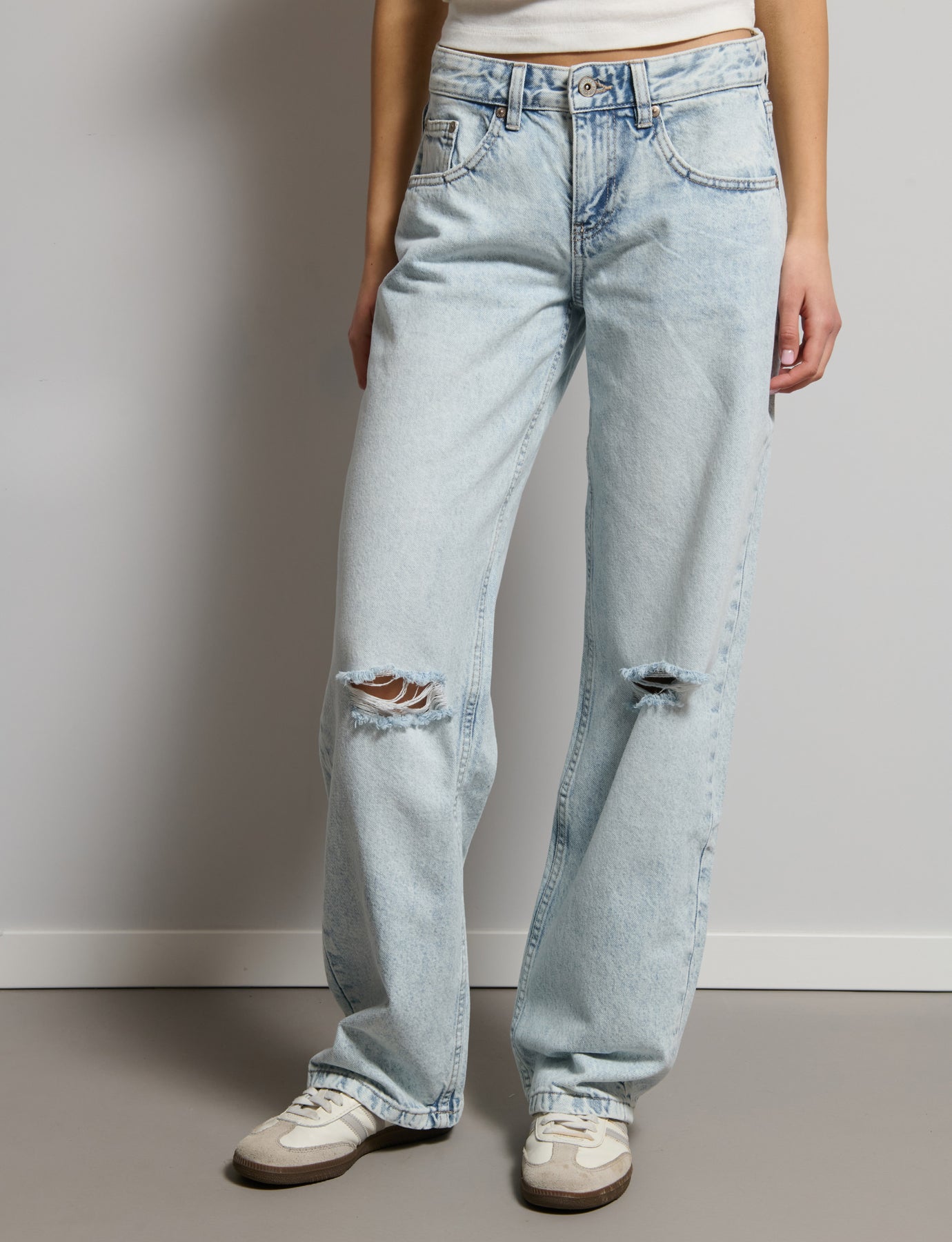 Jeans dritto con rotture sul ginocchio Composizione: 100% Cotone