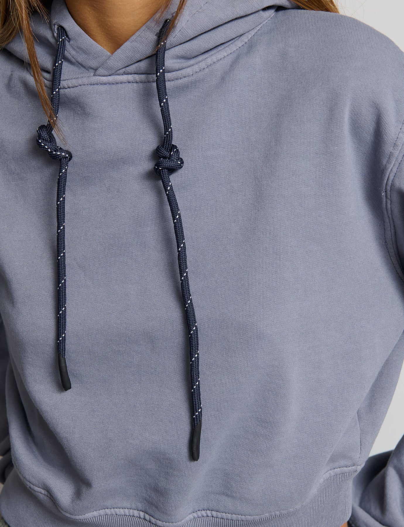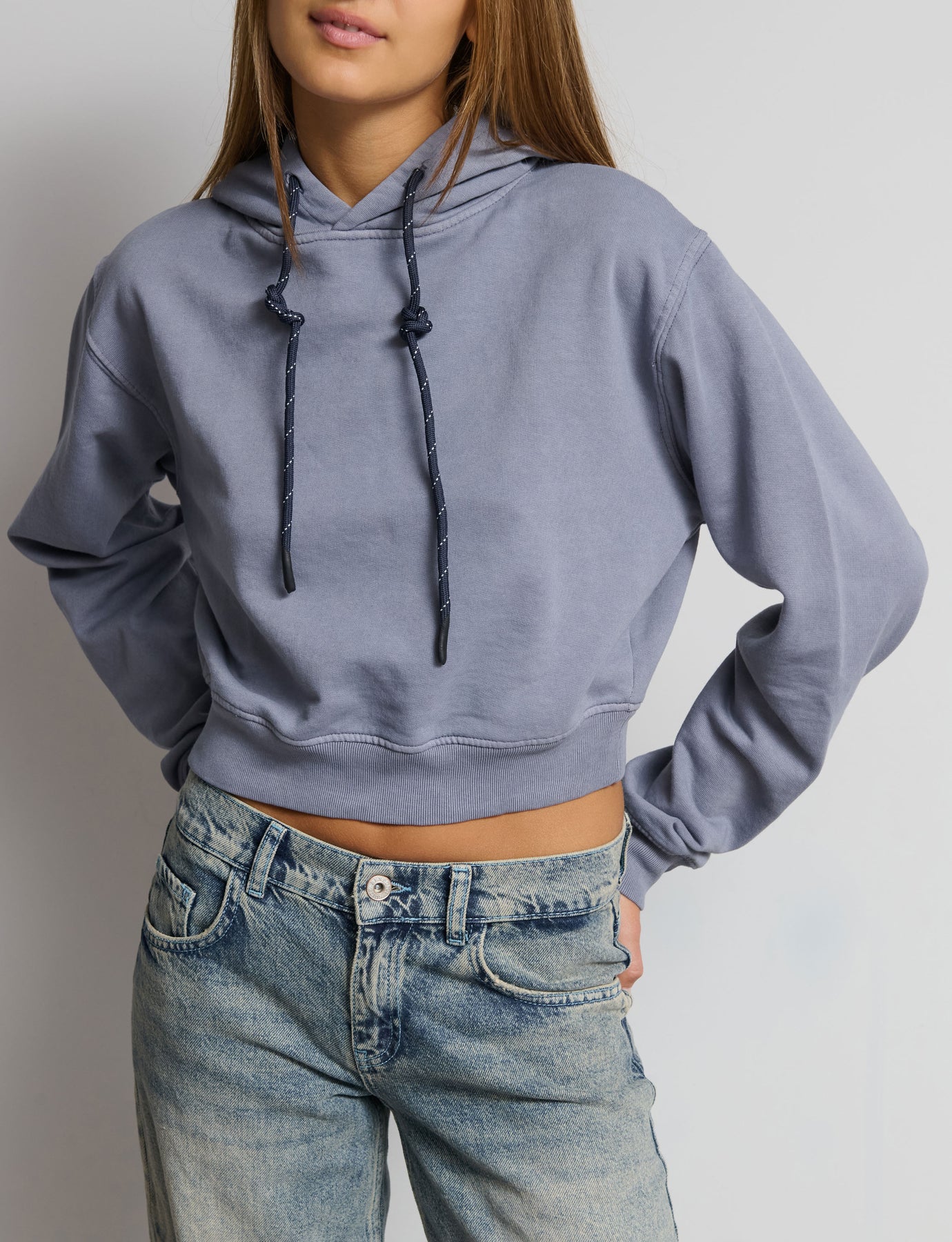 Felpa boxy con cappuccio e lacci a contrasto Composizione: 60% Cotone 40% Poliestere La modella è alta 170cm e indossa una S. Colore: azzurro Ref: KAROL