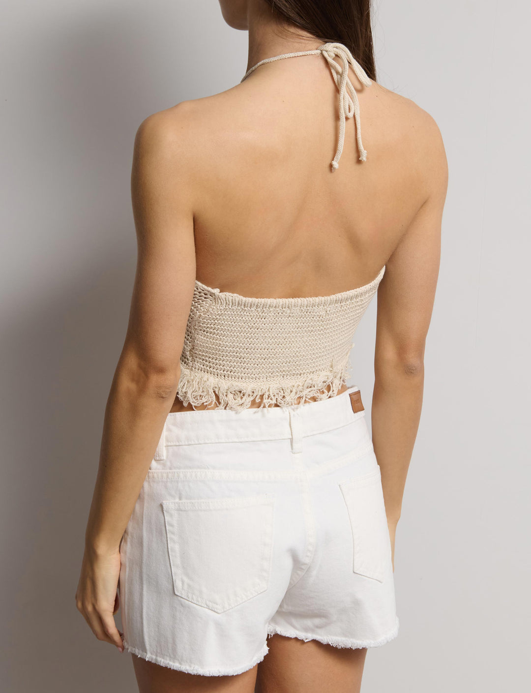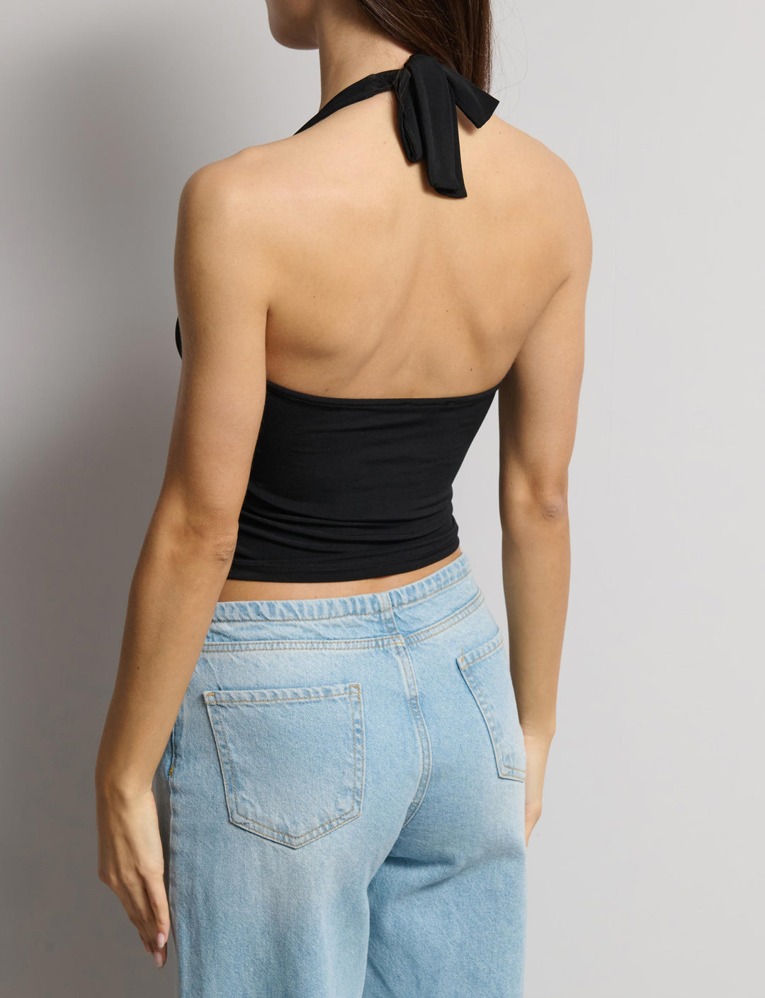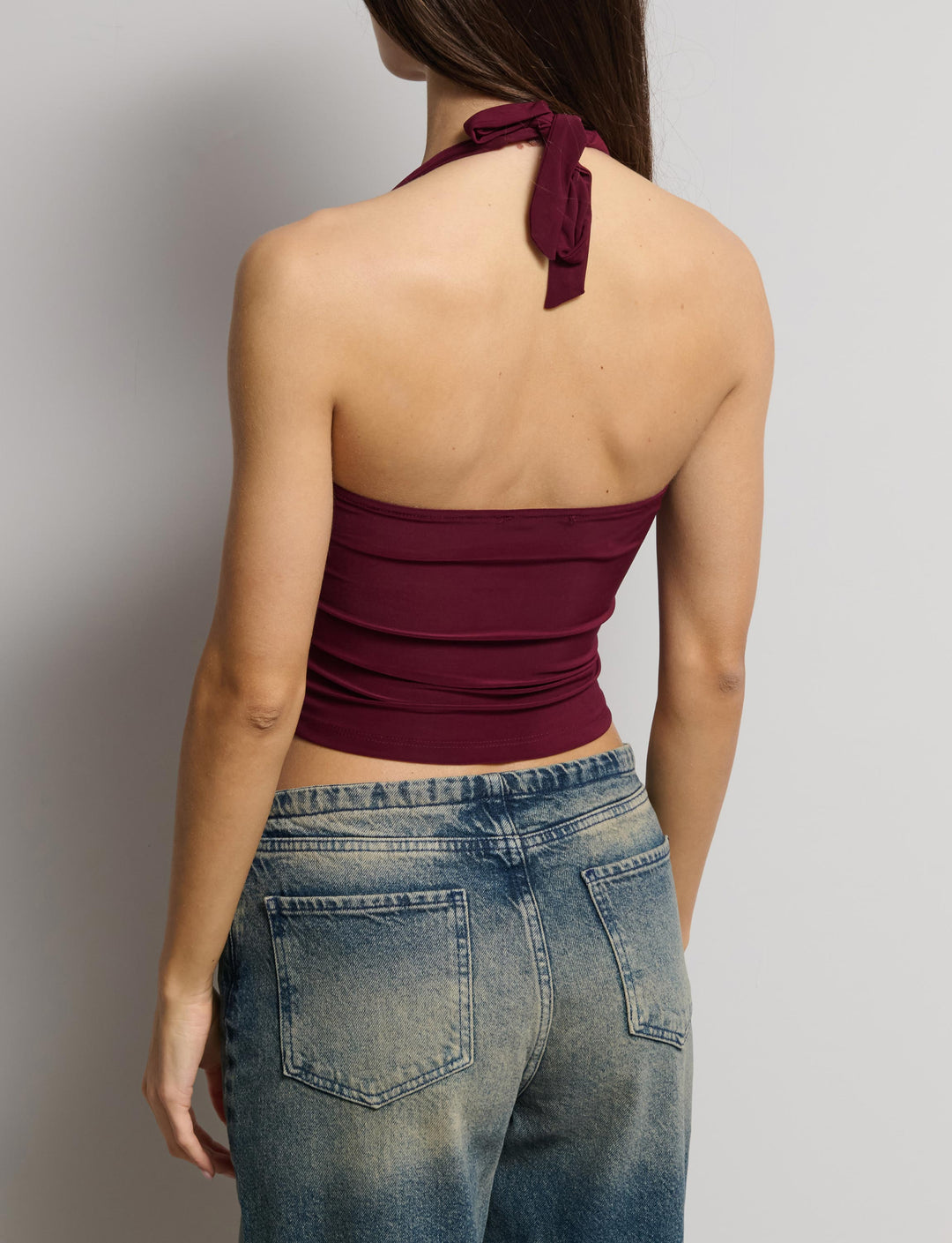 Top manica corta con scollo incrociato e arricciatura sui fianchi.