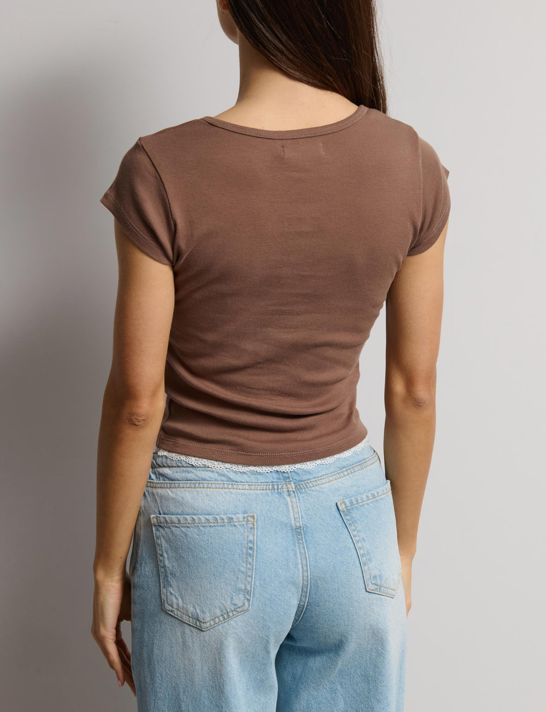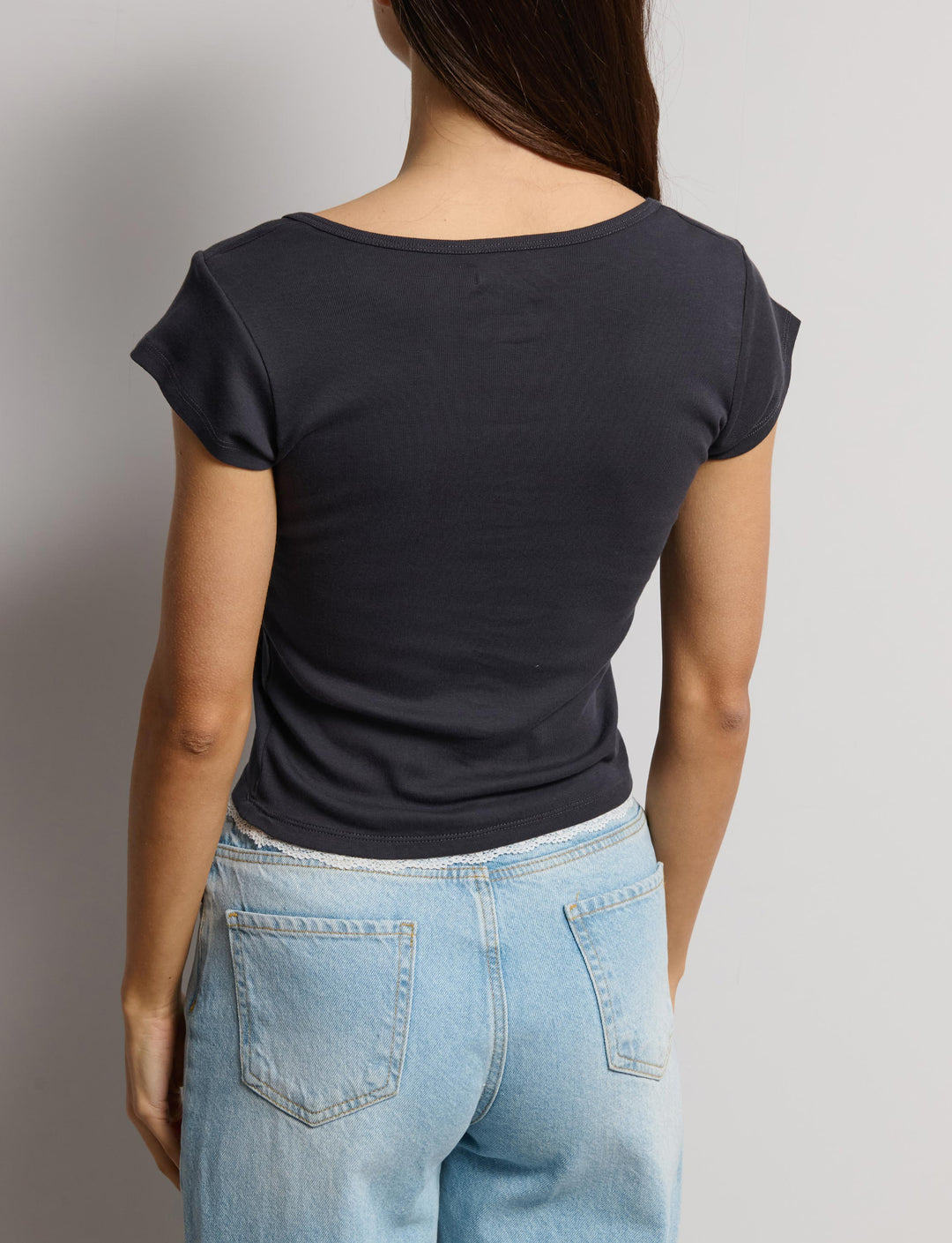 Top manica corta con scollo incrociato e arricciatura sui fianchi
