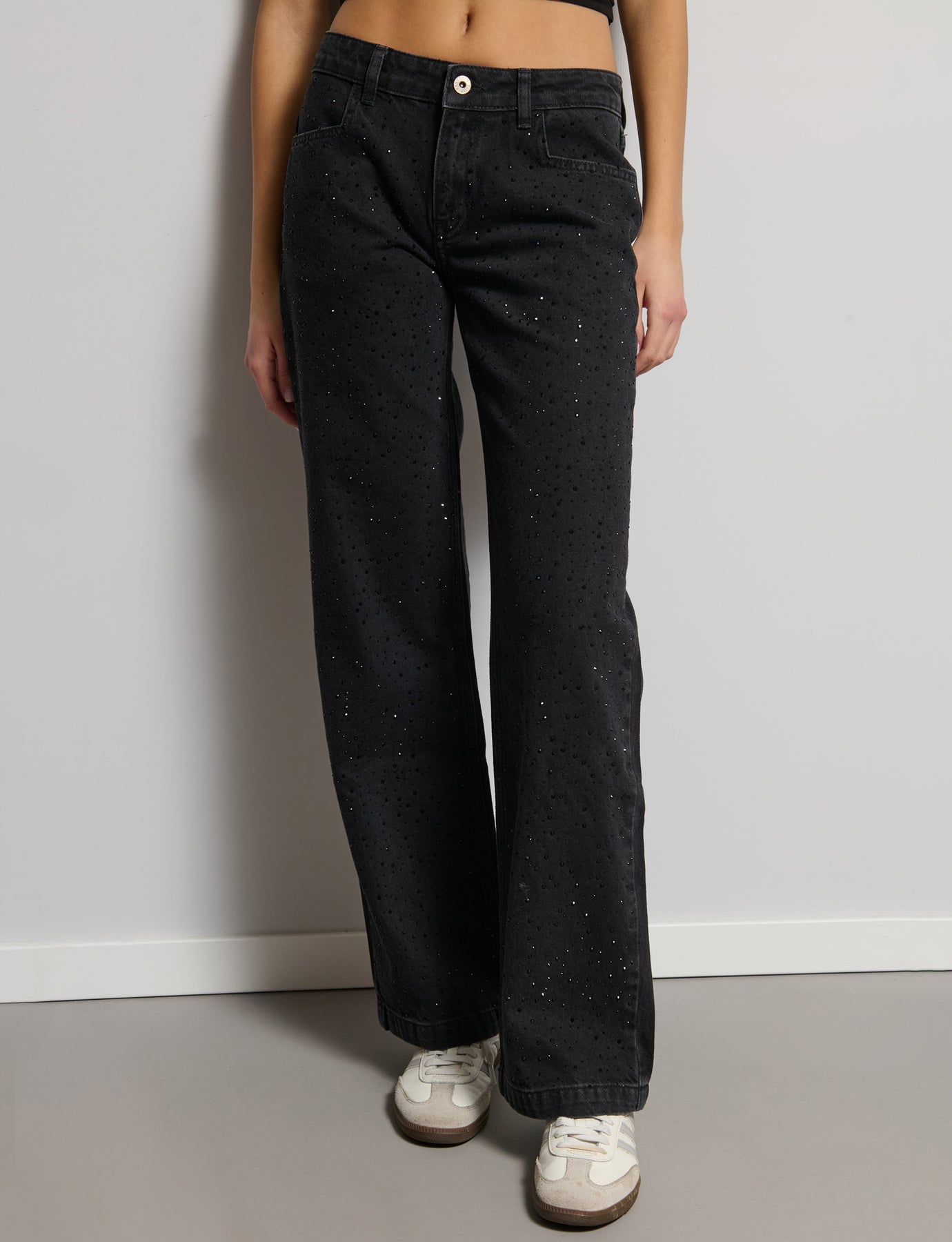 Jeans straight con strass applicati allover Composizione: 100% Cotone