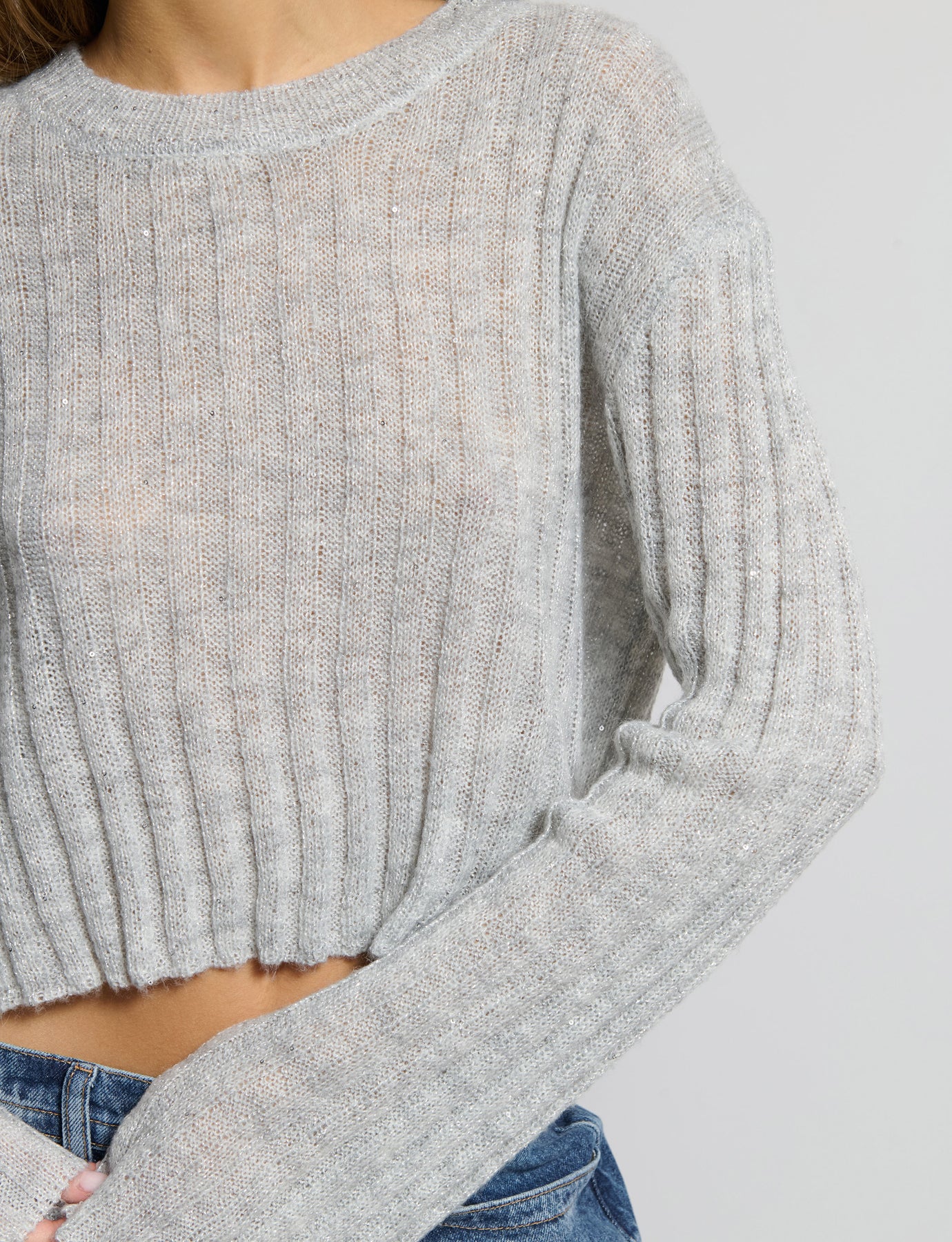 Maglioncino crop con paillettes. Composizione: 36% Poliestere 29% nylon 27% Lurex 8% Lana.